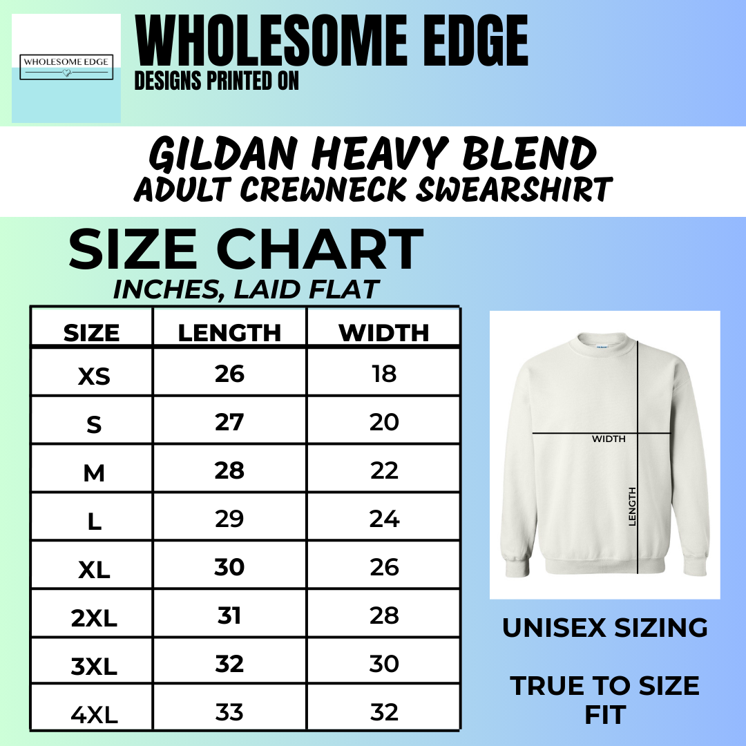Wholesome Edge design printed on a Gildan Heavy Blend crewneck sweatshirt. Sweatshirt is made of 50% cotton, 50% polyester. DTF printed for long lasting quality. Sweatshirt color shown is royal blue.