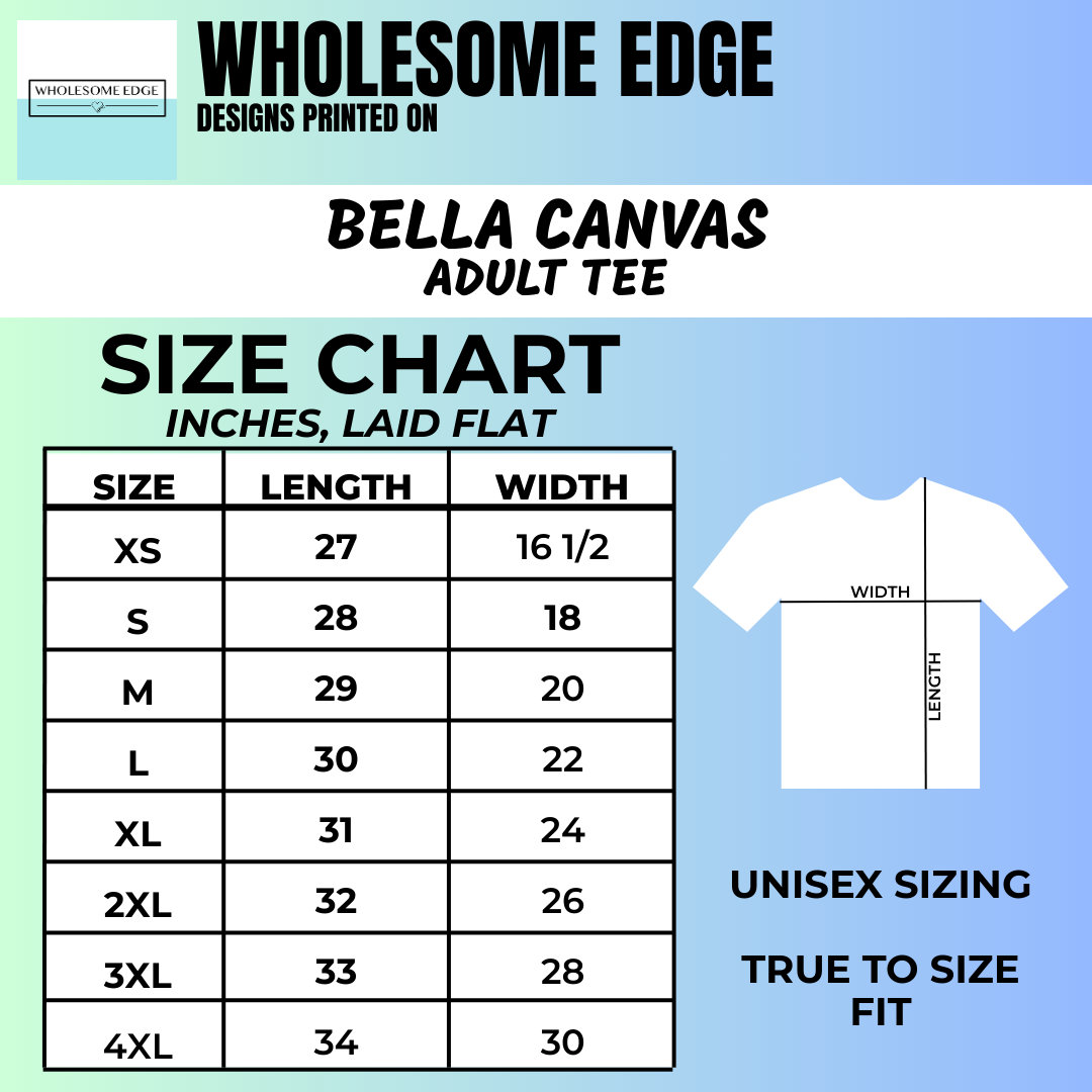 Wholesome Edge design printed on a Bella + Canvas t-shirt. Tee is super soft & made of 52% cotton, 48% polyester. DTF printed for long lasting quality. Shirt color shown is black.