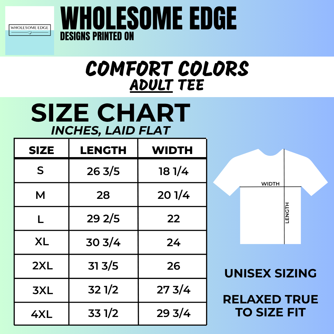 Wholesome Edge design printed on a Comfort Colors t-shirt! Tee is heavyweight, garment-dyed, & made of ring-spun 100% cotton. DTF printed for longevity.